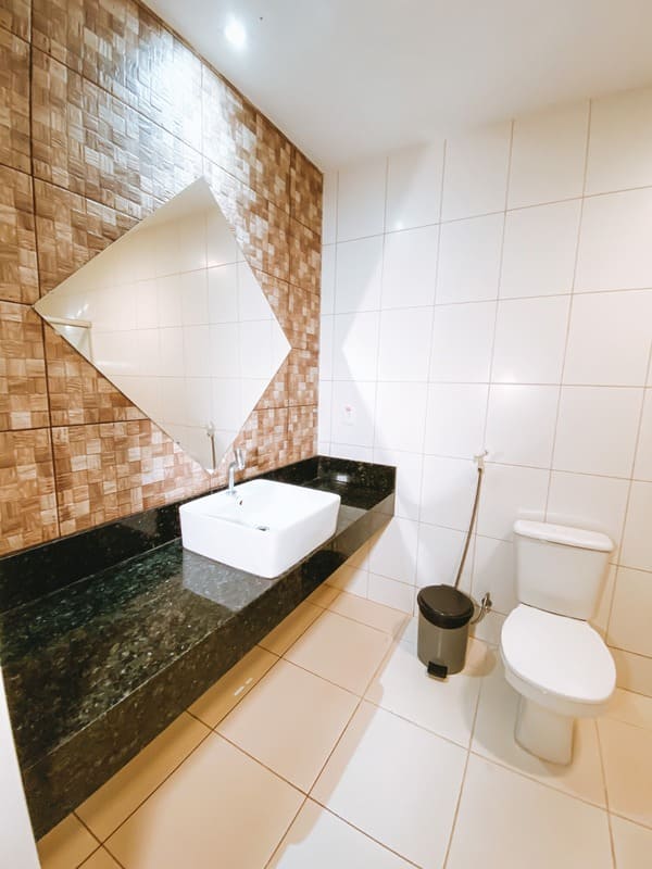 Apartamento de 20 m², equipado com cama queen size, SMART TV LED 32'(TV a cabo com 15 canais disponíveis), guarda roupa, frigobar, ar condicionado split, internet wi fi cortesia, mesa de trabalho, banheiro com kit completo de amenidades.