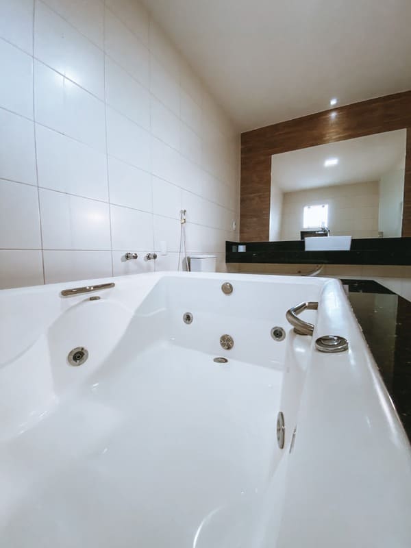 Apartamento de 35m² e equipado com uma cama king size, SMART TV LED 42' (TV A CABO com mais de 50 canais disponíveis), guarda roupa, frigobar, ar condicionado split, internet wi fi cortesia, mesa de trabalho e banheiro com banheira de hidromassagem e kit completo de amenidades.